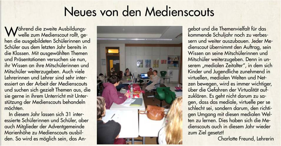 „Die Zusammenarbeit und die Qualität der Ausbildung hat uns sehr überzeugt und unsere Erwartungen wurden deutlich übertroffen. Sowohl bei den ausgebildeten Medienscouts, als auch bei den Schülern, die durch die Medienscouts im Bereich der Medienkompetenz ausgebildet wurden, konnte das begleitende Lehrerpersonal positive Auswirkungen im Sinne der Zielsetzung feststellen.“